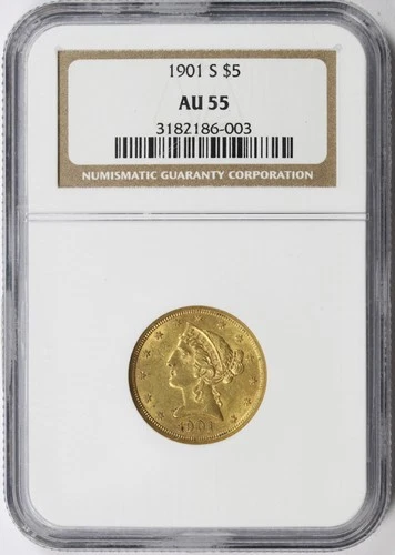 - 1901/0-S LIBERTY HEAD $5 HALF EAGLE GOLD NGC MS611901 · US Pre-1933 Gold Bullion · NGC$1,299.00Buy It NowFree deliveryLocated in United StatesFree returnswgb01 100% positive (5.5K)