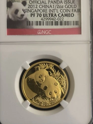 - 2012 Gold Panda 1/2 oz. Singapore Int'l Coin Fair Commemorative NGC PF701/2 oz · 2012 · Chinese Panda$113.507 bids · Time left3d 22h left (Thu, 11:47 PM)Free deliveryLocated in United Statesdoug5091 100% positive (1.6K)