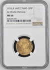 - 1922B Switzerland Gold 20 Francs KM-31 NGC MS-66+Opens in a new window or tab$1,270.38Buy It Now+$14.95 deliveryLocated in United States19 watchers
