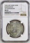 - 1976 CAPE VERDE Silver 250 Escudos Independence Anniversary NGC MS 65Opens in a new window or tab$65.00or Best OfferFree deliveryLocated in United States