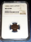 - Greece 1900 A Crete Lepton Copper Coin NGC MS63 BN Choice UNC KM# 1 CERTIFIEDOpens in a new window or tab$194.95or Best Offer+$6.95 deliveryLocated in United States