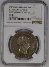 - 1825(1873) RUSSIA BIT-F6 CONSTANTINE I ANTIQUARIAN FORGERY ROUBLE