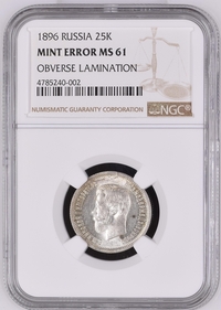 Wenn die oben angezeigten Informationen falsch sind oder nicht mit der Münze übereinstimmen, oder wenn Sie glauben, dass Sie einen gefälschten oder manipulierten NGC-Halter besitzen, wenden Sie sich bitte an Service@NGCcoin.de. Wenn Sie mehr über gefälschte oder manipulierte NGC-Halter erfahren möchten, klicken Sie hier.