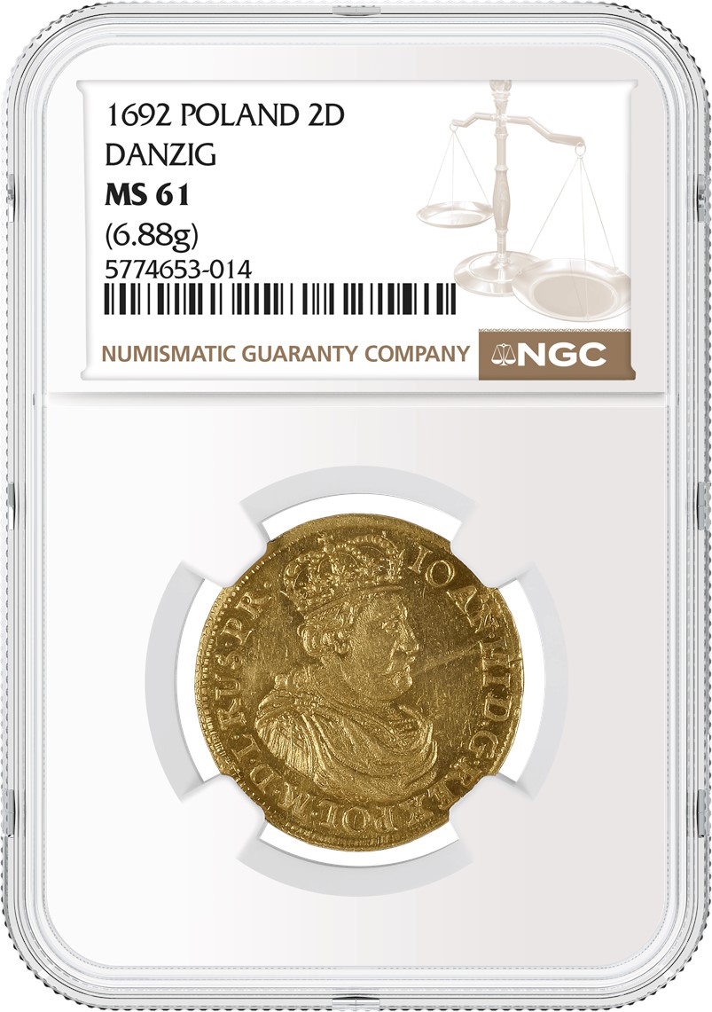 Zu den Top-Highlights dieser Auktion zählt ein Polen (1692) 2 Dukat, Danzig, bewertet mit NGC MS 61 (Los 468), dessen Startpreis sich auf 270.000 PLN (ca. 77.000 USD) beläuft. Die Münze wurde 1692 in der Münzstätte Danzig geprägt und nach dem entscheidenden Sieg von König Johann III. Sobieski über das Osmanische Reich in der Schlacht am Kahlenberg bei Wien 1683 ausgegeben, ein Ereignis, das das politische Gleichgewicht Europas ins Wanken brachte. Nach Angaben des Auktionshauses gibt es bis heute nur zwei nachweisliche Exemplare dieser Münze.